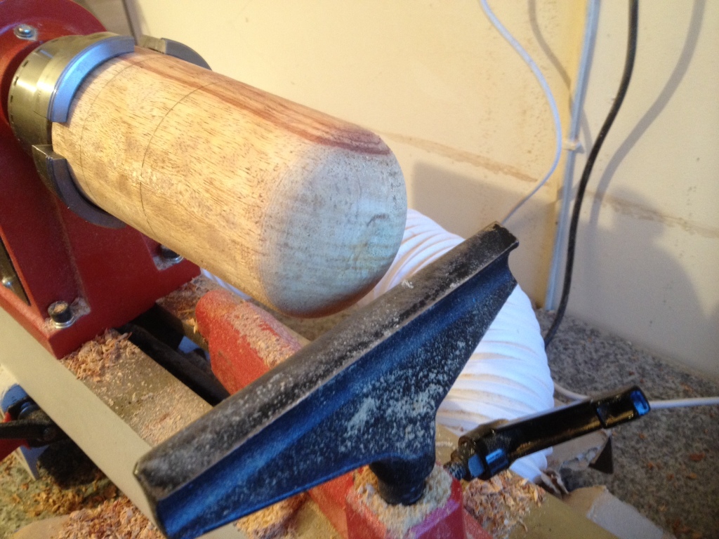 Once I had knocked all the corners off the tricky part commences of turning it down to the desired shape.