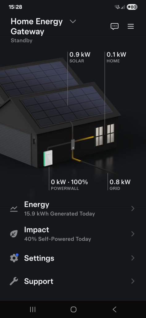 Between 12 noon and 3 pm I had as many appliances on as I could and the Powerwall switched off. Despite there being some solar generation I still managed to download 15 kW of free electricity. It had heated my water for free, charged the car and dried the washing. Come 3pm I switched the Powerwall II back on and had 100% still in the battery so it would not need to download any cheap rate electricity overnight – a win win situation.