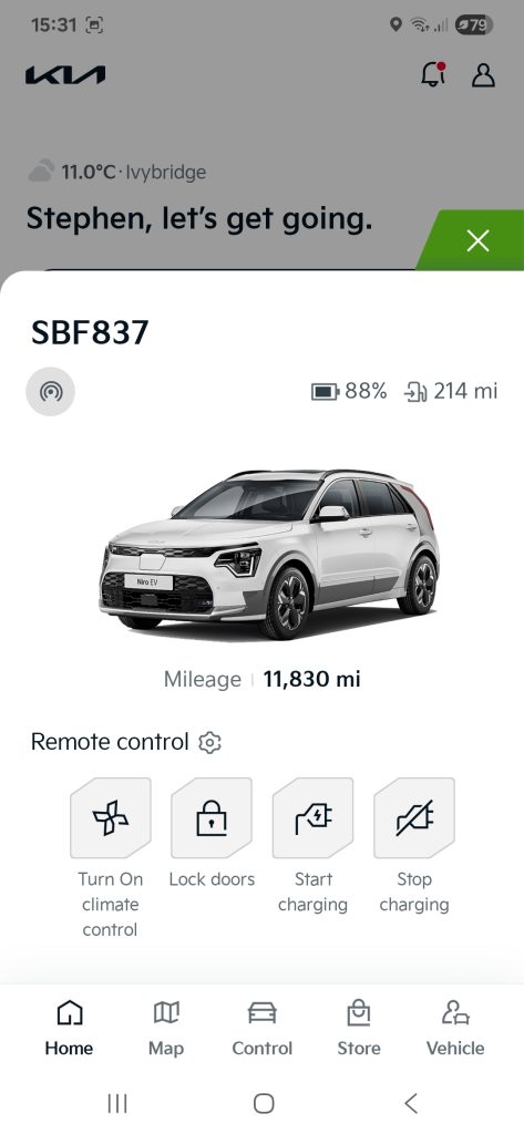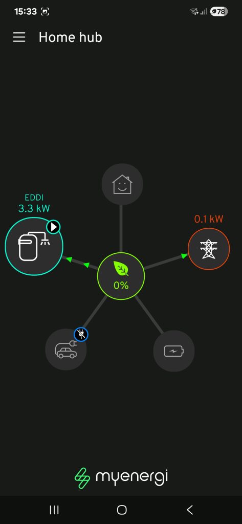 Then I was notified about the three hours on Saturday. When Saturday came I turned off the Tesla Powerwall and put my Kia Niro EV on charge, the tumble dryer and the Eddi for heating the water. Now day time free electric is not so good on sunny days as my solar array is capped at 5 kWh but this time of the year when its cold and cloudy then free electricity makes a big difference.